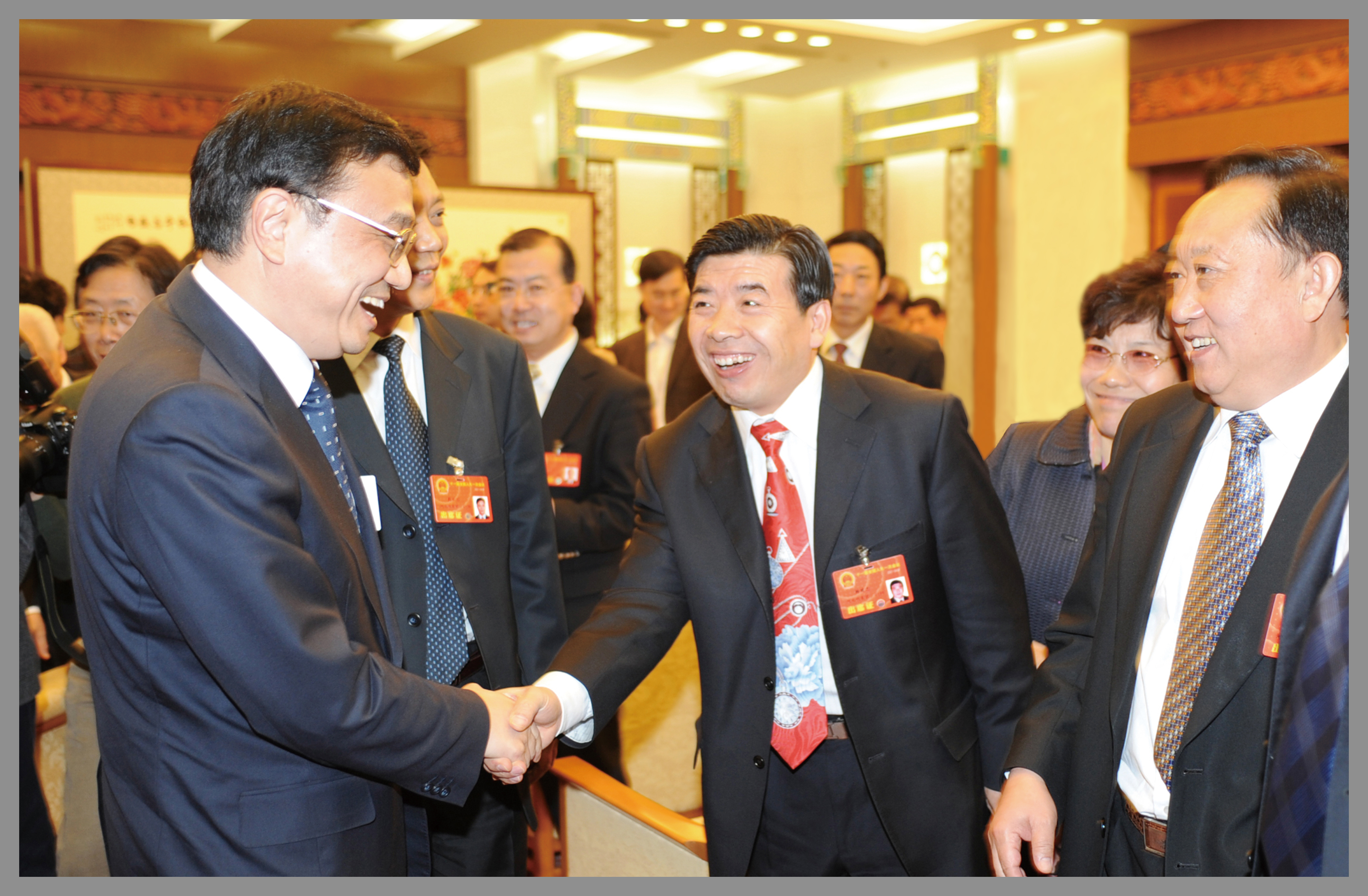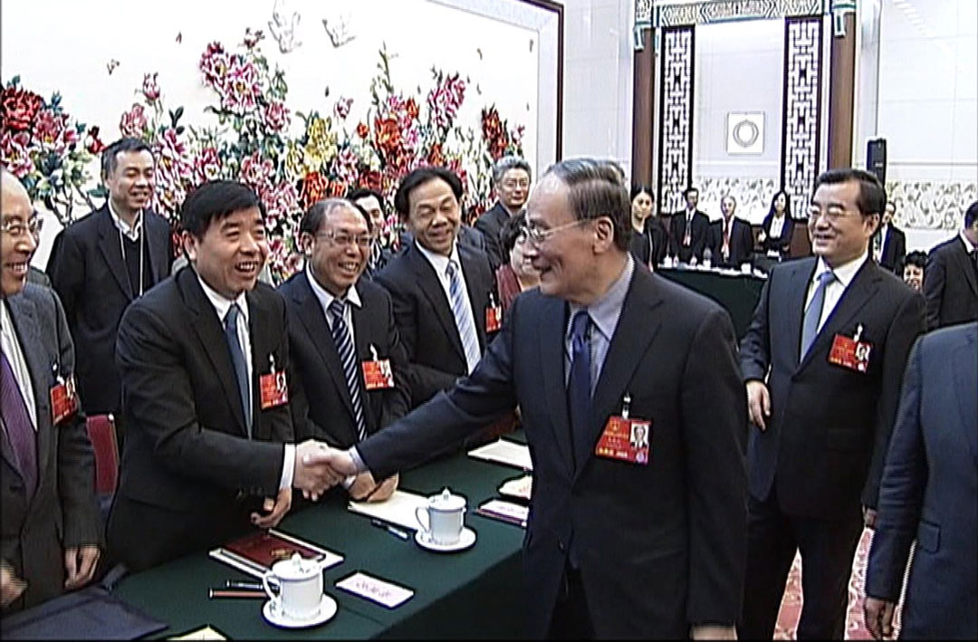 时任中央政治局常委、中央纪委书记王岐山与杨建忠董事长亲切握手